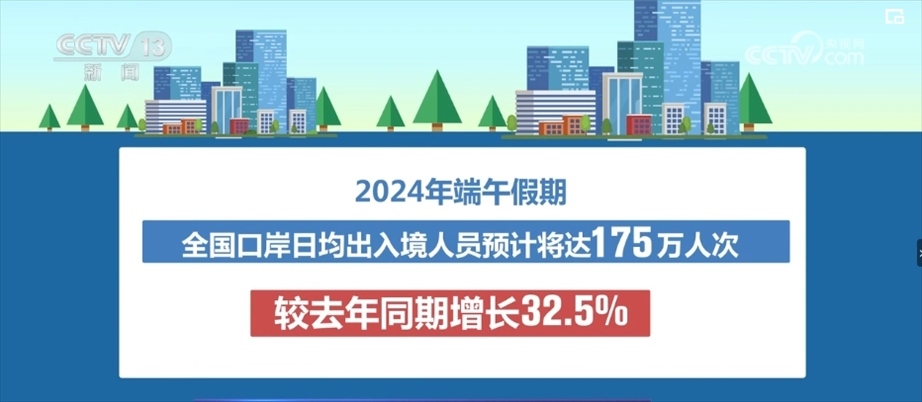 央視網(wǎng)消息:記者6月6日從國家移民管理局獲悉,2024年端午假期,全國口岸日均出入境人員預(yù)計(jì)將達(dá)175萬人次,較2023年同期增長32.5%。