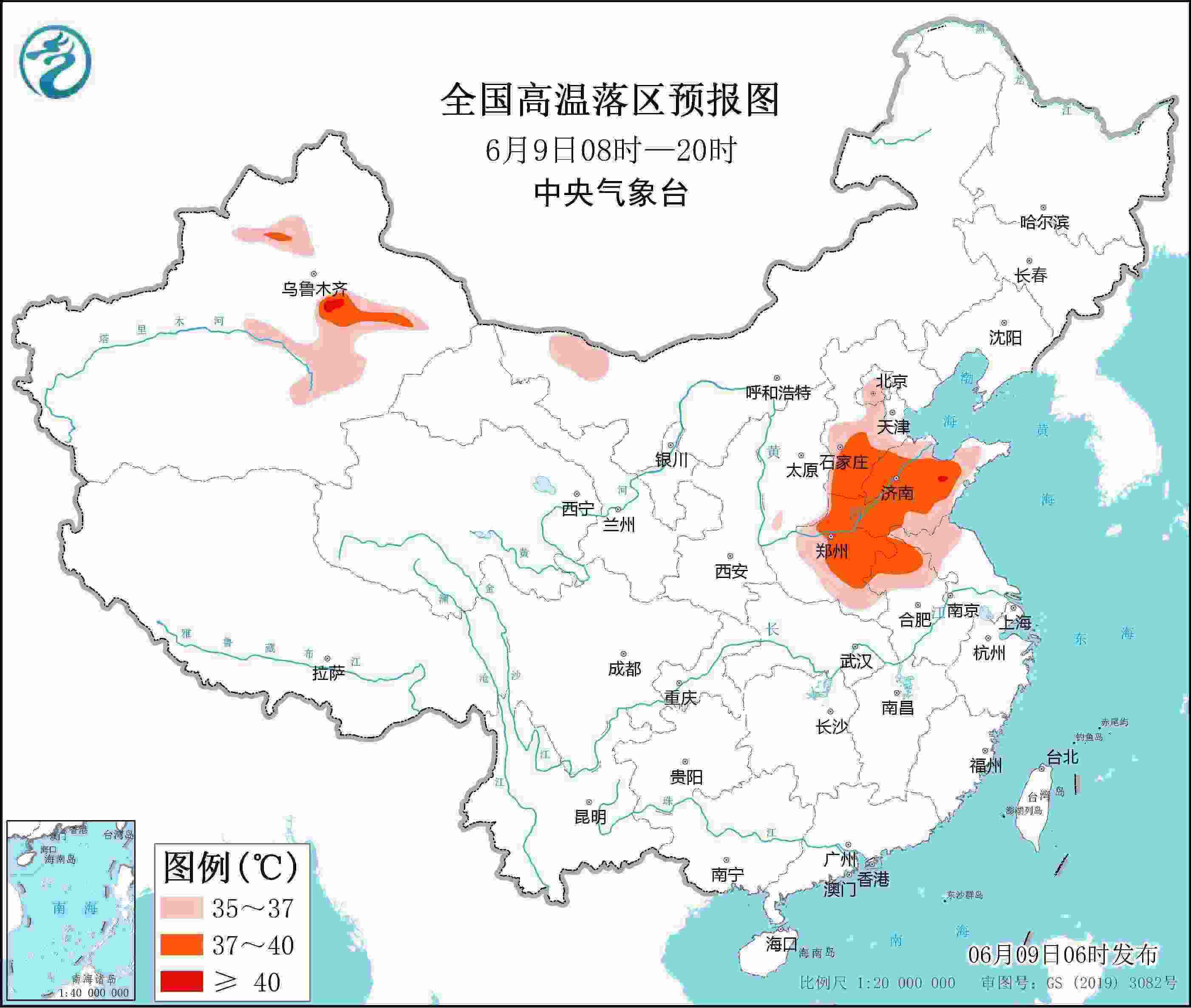 央視網(wǎng)消息:中央氣象臺(tái)6月9日06時(shí)繼續(xù)發(fā)布高溫黃色預(yù)警。預(yù)計(jì)6月9日白天,內(nèi)蒙古西部、新疆沿天山地區(qū)和南疆盆地、河北中南部、北京、天津西部和南部、山東大部、河南大部、安徽北部、江蘇北部等地有35~36℃高溫天氣,其中,新疆北疆沿天山地區(qū)和吐魯番盆地、河北南部、山東中西部、河南中東部、安徽北部等地部分地區(qū)最高氣溫37~39℃,局地可達(dá)40℃以上。
