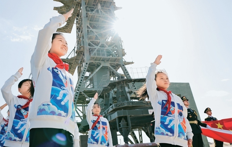 少先隊是建設社會主義和共產(chǎn)主義的預備隊。廣大少先隊員在少先隊這所大學校里立志向、修品行、練本領(lǐng),從小培養(yǎng)熱愛黨、熱愛祖國、熱愛人民的情懷,展現(xiàn)出朝氣蓬勃的精神風貌。2024年4月24日是第九個“中國航天日”,“紅領(lǐng)巾愛祖國——我心中的五星紅旗”主題活動在中國酒泉衛(wèi)星發(fā)射中心東方紅衛(wèi)星發(fā)射場舉行。圖為當日,來自內(nèi)蒙古、甘肅、四川等地的少先隊員在中國酒泉衛(wèi)星發(fā)射中心東方紅衛(wèi)星發(fā)射塔架下敬隊禮。 新華社記者 金立旺/攝