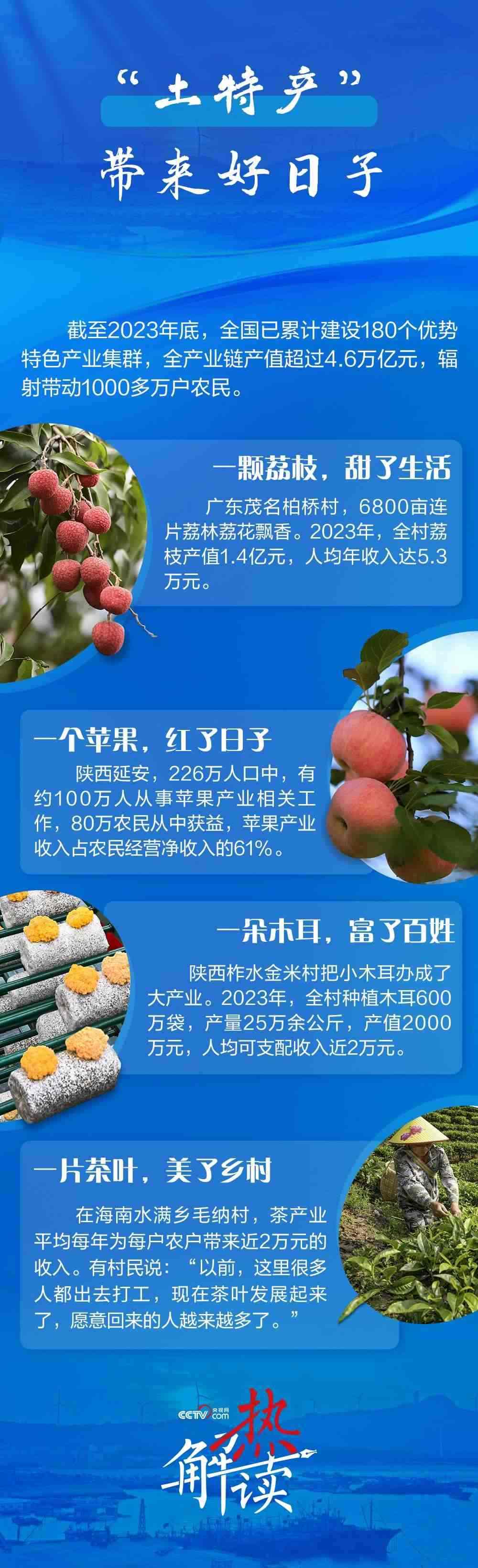 黨的二十屆三中全會(huì)通過的《中共中央關(guān)于進(jìn)一步全面深化改革、推進(jìn)中國式現(xiàn)代化的決定》提出,堅(jiān)持農(nóng)業(yè)農(nóng)村優(yōu)先發(fā)展,完善鄉(xiāng)村振興投入機(jī)制。2024年中央一號(hào)文件就“提升鄉(xiāng)村產(chǎn)業(yè)發(fā)展水平”進(jìn)行專章部署,鼓勵(lì)各地因地制宜大力發(fā)展特色產(chǎn)業(yè),支持打造鄉(xiāng)土特色品牌。