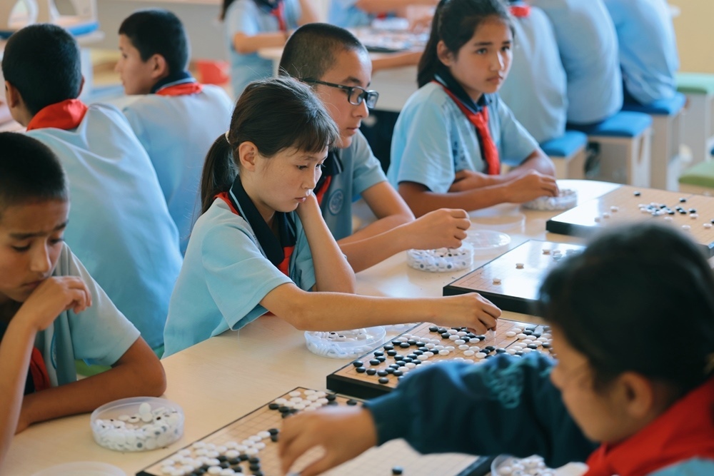 2024年9月23日,在新疆烏什縣依麻木鎮(zhèn)國家通用語言學(xué)校,學(xué)生們?cè)谙聡?。新華社記者 任沁沁 攝