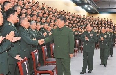 十二月四日,中共中央總書記、國(guó)家主席、中央軍委主席習(xí)近平視察信息支援部隊(duì),代表黨中央和中央軍委,對(duì)信息支援部隊(duì)第一次黨代表大會(huì)的召開表示熱烈祝賀,向信息支援部隊(duì)全體官兵致以誠(chéng)摯問(wèn)候。這是習(xí)近平同代表們親切握手。新華社記者 李 剛攝