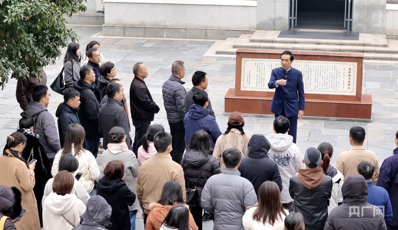胡昇正在給游客講解青山生態(tài)蝶變的故事(央廣網見習記者鄧子依 攝)