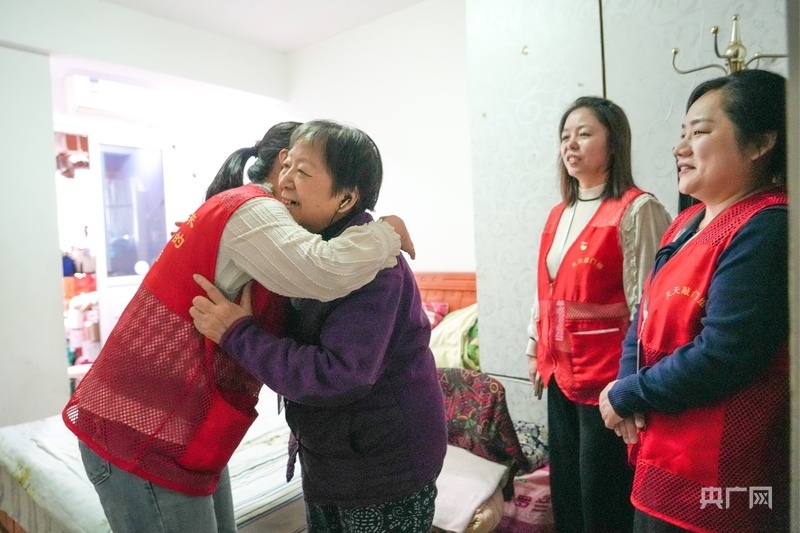 張麗娟熱情地擁抱社區(qū)工作人員(央廣網見習記者鄧子依 攝)