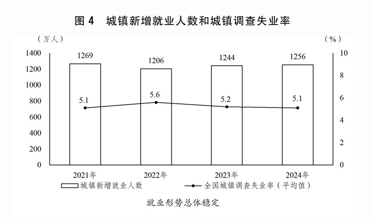 ——全國城鎮(zhèn)調查失業(yè)率5.5%左右,城鎮(zhèn)新增就業(yè)1200萬人以上。關于全國城鎮(zhèn)調查失業(yè)率,主要考慮:2025年重點人群就業(yè)壓力仍然較大,將城鎮(zhèn)調查失業(yè)率目標定為5.5%左右,與2024年保持一致,體現(xiàn)了加大穩(wěn)就業(yè)力度的導向。關于城鎮(zhèn)新增就業(yè),主要考慮:2025年需在城鎮(zhèn)就業(yè)的新成長勞動力規(guī)模進一步增加,就業(yè)總量與結構性矛盾依然突出,1200萬人以上的預期目標與2024年目標保持一致,能夠更好體現(xiàn)穩(wěn)就業(yè)惠民生的力度和決心;同時,隨著經濟持續(xù)回升向好,就業(yè)政策持續(xù)發(fā)力,實現(xiàn)這一目標是有支撐的。