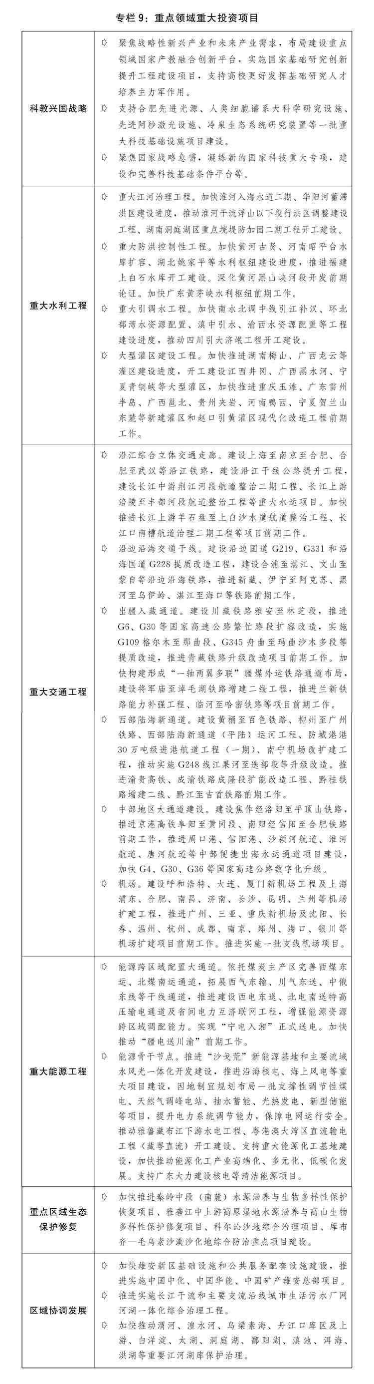 二是擴大有效益的投資。統(tǒng)籌傳統(tǒng)和新型基礎設施建設、傳統(tǒng)和新興產業(yè)發(fā)展、“投資于物”和“投資于人”,著力提高投資的經濟、社會、生態(tài)等綜合效益。2025年安排中央預算內投資7350億元,比2024年多350億元。扎實推進重大工程項目建設,推動“十四五”規(guī)劃102項重大工程圓滿收官,及早謀劃“十五五”重大項目。常態(tài)化做好項目謀劃儲備,加強用地、用海、用能、環(huán)評等要素和融資保障,高質量推進項目前期工作和建設實施,盡快形成實物工作量。加快地方政府專項債券發(fā)行使用,優(yōu)化完善專項債券管理機制,額度分配向項目準備充分、投資效率較高、資金使用效益好的地區(qū)傾斜,擴大用作項目資本金的領域、比例,實施好投向領域“負面清單”管理、下放項目審核權限等措施,在部分省市開展“自審自發(fā)”試點。建立政府投資支持基礎性、公益性、長遠性重大項目建設長效機制。深化投資審批制度改革,完善項目全周期監(jiān)督管理機制。更大力度促進民間投資,從放寬準入、權益保護、要素協(xié)同、融資支持等方面進一步健全民營企業(yè)參與國家重大項目建設的長效機制,常態(tài)化向民間資本推介項目,在鐵路、核電、水利、生態(tài)環(huán)保、倉儲物流、新型基礎設施、公共服務等領域推出一批吸引民間資本參與的重大項目,規(guī)范實施政府和社會資本合作(PPP)新機制,推動基礎設施領域不動產投資信托基金(REITs)擴圍擴容。