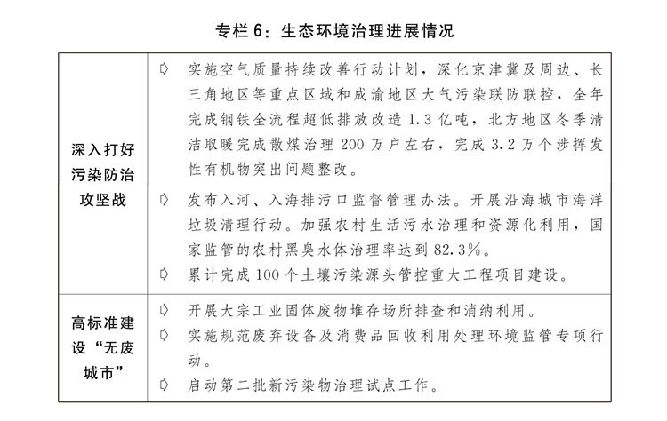 (九)堅定不移推進生態(tài)文明建設,全面綠色轉型取得積極進展。出臺加快經濟社會發(fā)展全面綠色轉型的意見,持續(xù)深入打好污染防治攻堅戰(zhàn),積極穩(wěn)妥推進碳達峰碳中和,大力實施全面節(jié)約戰(zhàn)略,美麗中國建設成效明顯。
