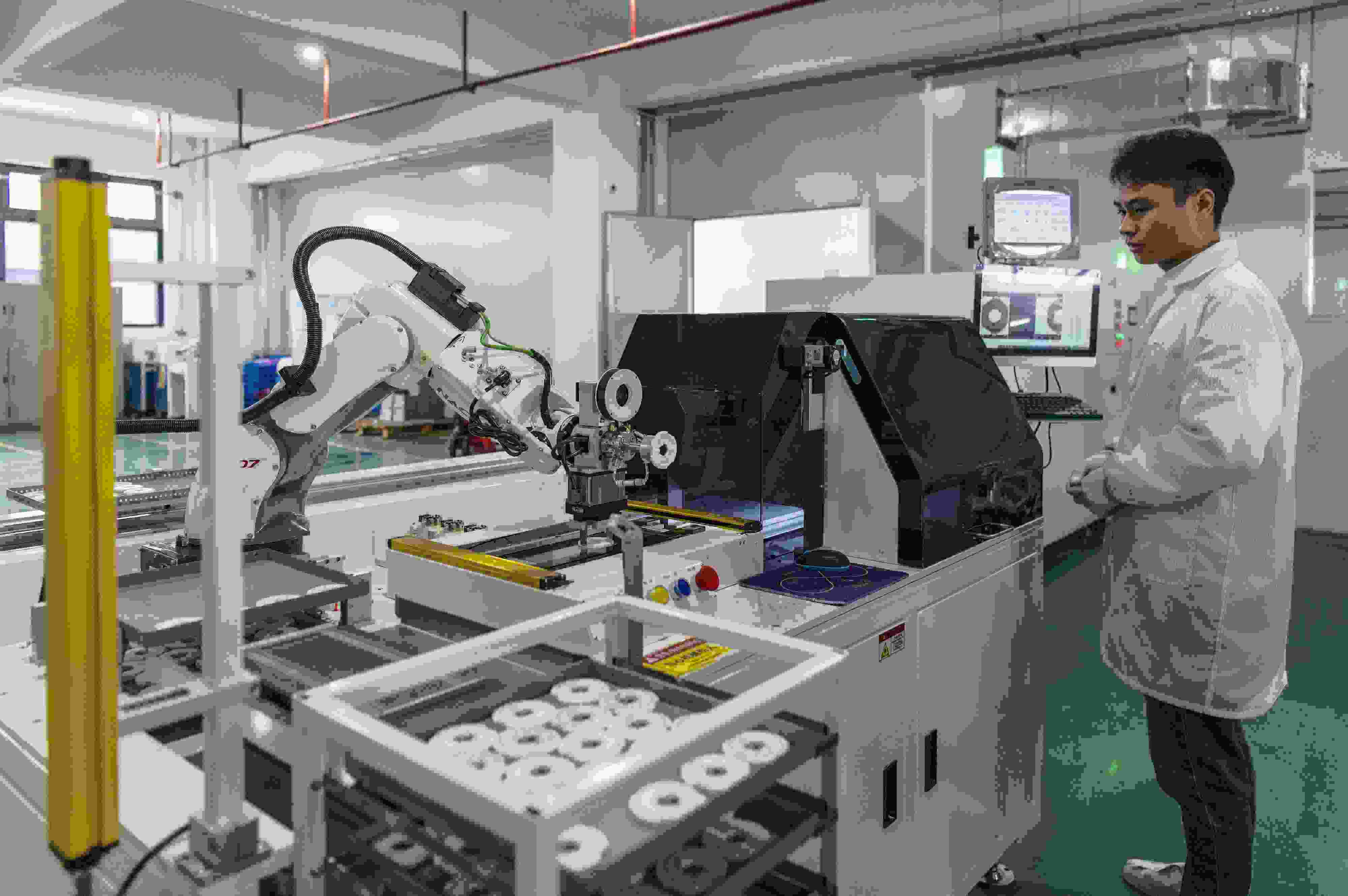 △2025年3月11日,在浙江省金華市浦江三思光電技術有限公司自動化生產(chǎn)線上,一只只機械臂靈活運轉著,趕訂單、忙生產(chǎn)。