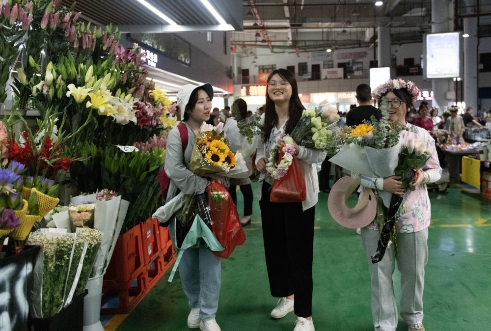 2024年11月25日,消費(fèi)者在云南省昆明市斗南花卉市場內(nèi)選購花卉。