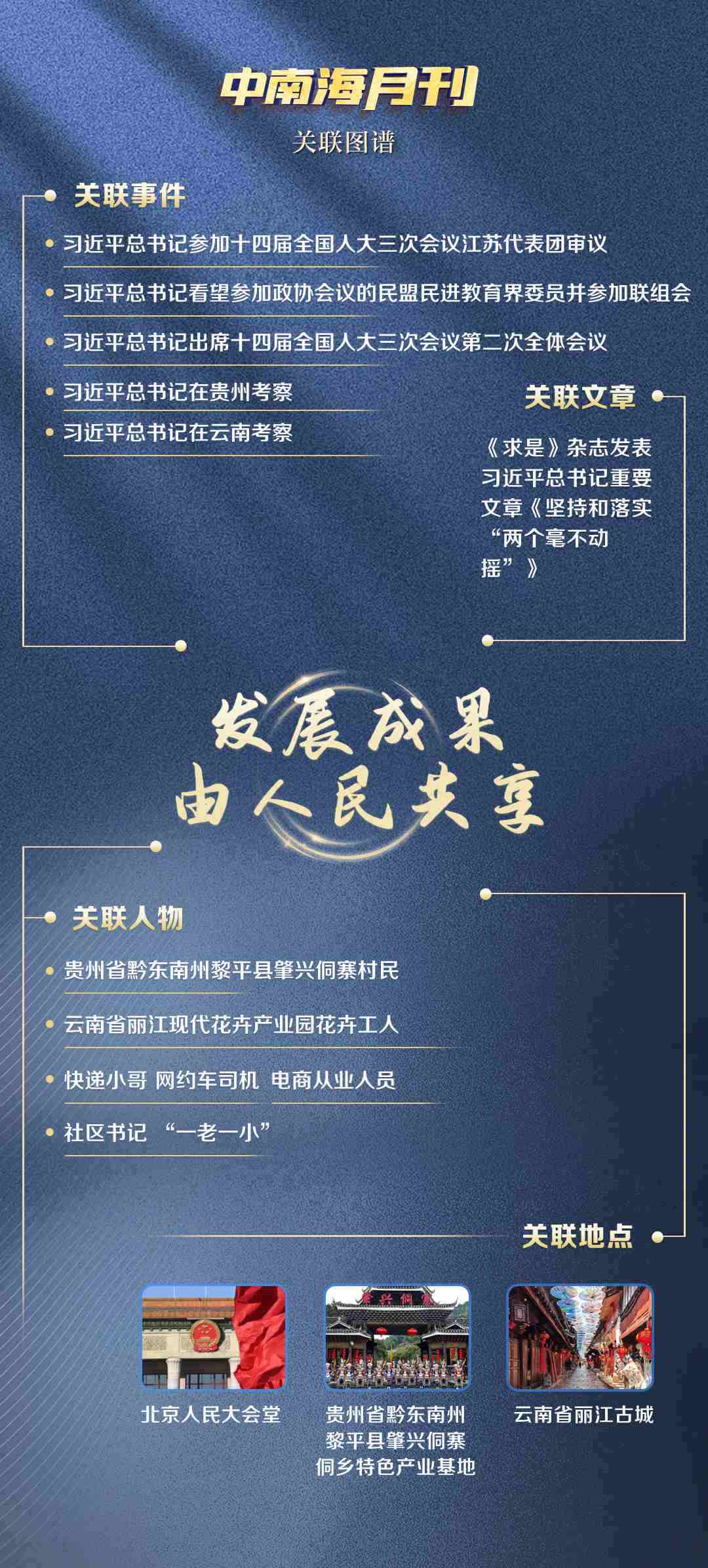 觀察央視網(wǎng)I學(xué)習(xí)數(shù)據(jù)庫生成的3月關(guān)聯(lián)圖譜,無論是對高質(zhì)量發(fā)展的謀篇布局,還是推動優(yōu)秀傳統(tǒng)文化守正創(chuàng)新,“發(fā)展成果由人民共享”的理念始終貫穿其中,“致廣大而盡精微”的治理方法也清晰可見。