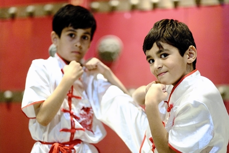 2024年6月11日,在塔吉克斯坦首都杜尚別,愛好中國武術(shù)的當?shù)貎和瘏⒓铀怂固姑褡宕髮W孔子學院的武術(shù)表演排練。新華社記者 鄭開君 攝