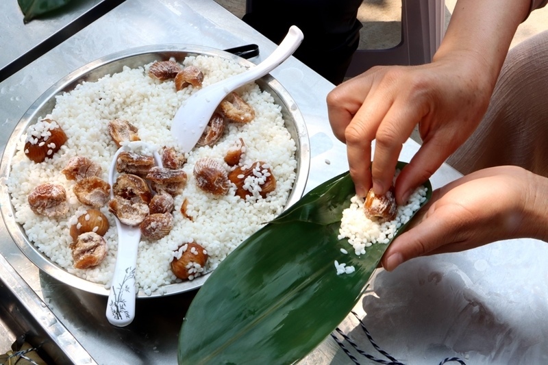 5月29日,在山東省臨沂市平邑縣仲村鎮(zhèn)東壩子村,人們在包粽子。