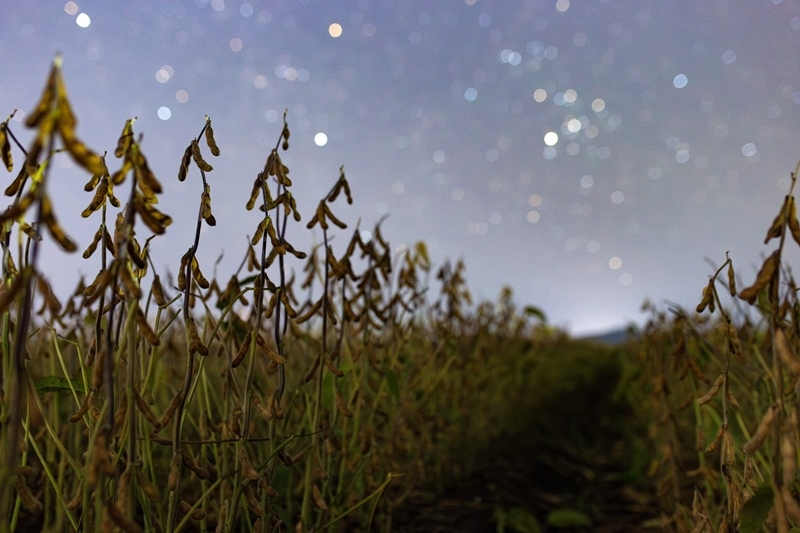 9月17日在黑龍江省佳木斯市富錦市拍攝的星空下的大豆。