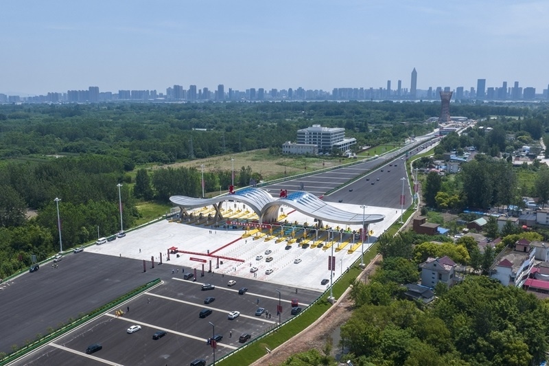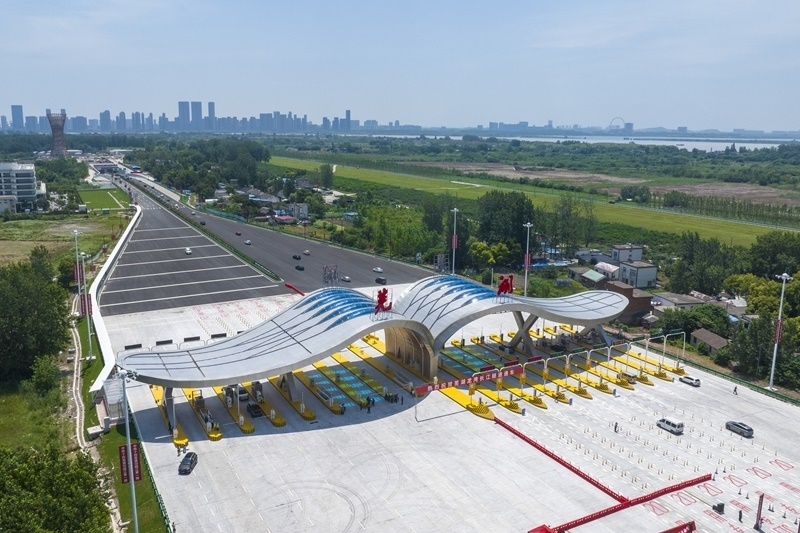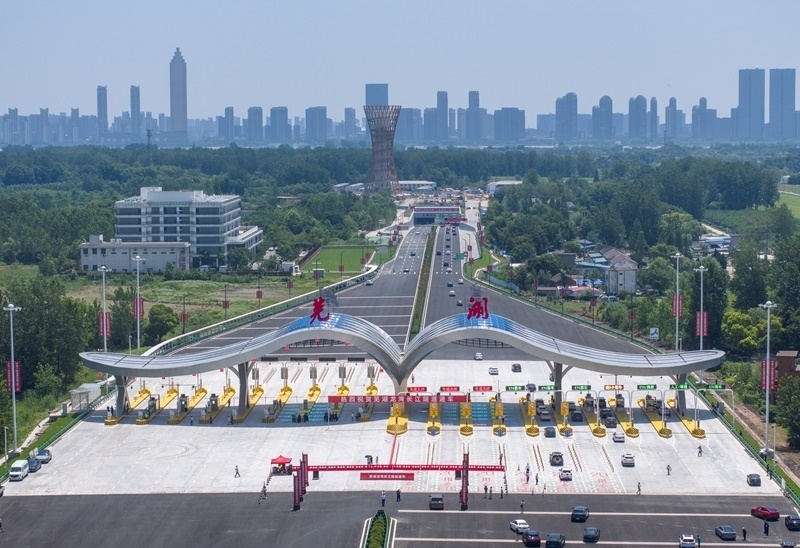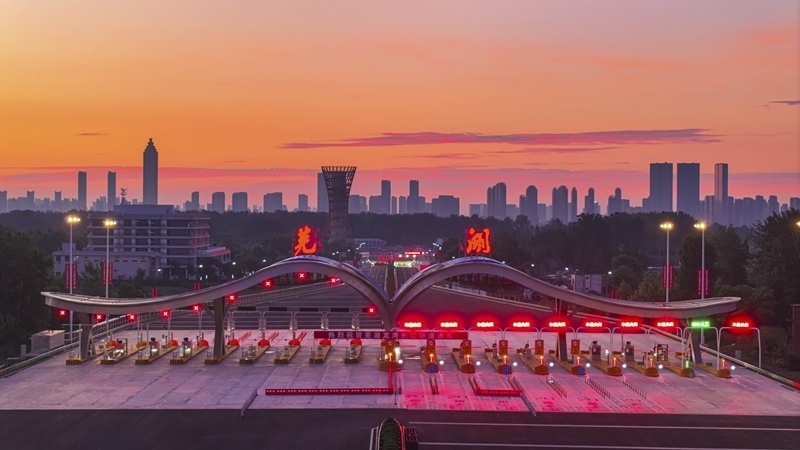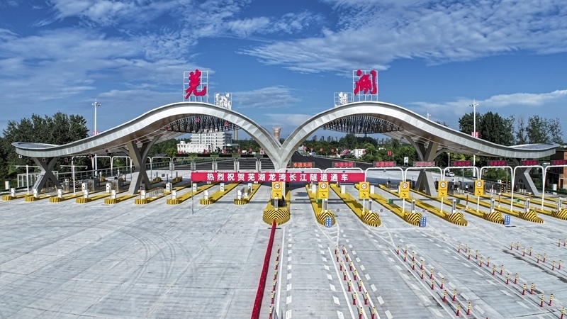 7月1日,車輛通過蕪湖龍灣長江隧道收費站(無人機(jī)照片)。
