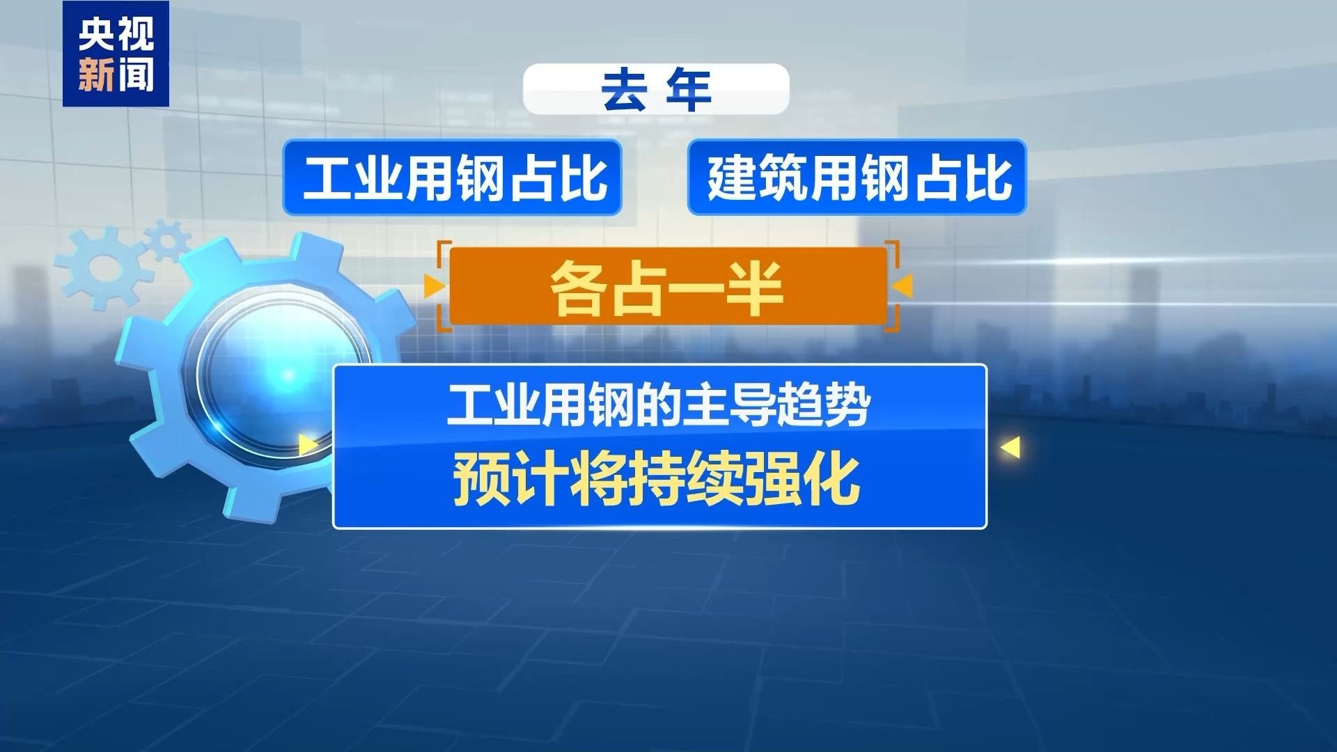 專家表示,我國鋼材消費結構正經歷深刻轉型:工業(yè)用鋼占比持續(xù)提升,建筑用鋼占比則相應下降。去年兩者占比已達各半,且工業(yè)用鋼的主導趨勢預計將持續(xù)強化。
