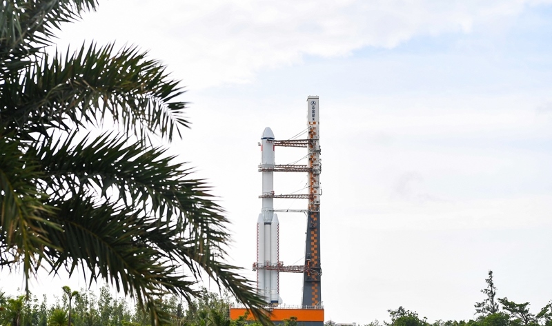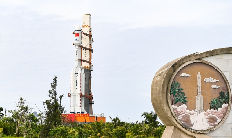 7月12日,天舟九號貨運(yùn)飛船與長征七號遙十運(yùn)載火箭組合體垂直轉(zhuǎn)運(yùn)至發(fā)射區(qū)。