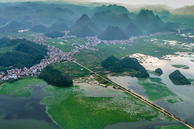 7月15日拍攝的普者黑景區(qū)風(fēng)光(無(wú)人機(jī)照片)。