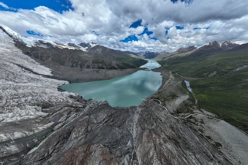 7月19日拍攝的薩普雪山及延伸的冰川(無人機(jī)照片)。