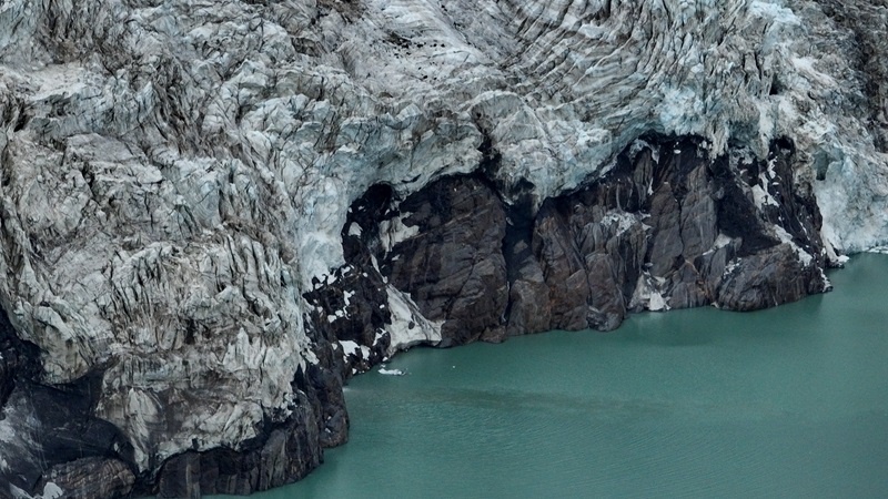 7月19日拍攝的薩普冰川冰舌末端(無人機(jī)照片)。