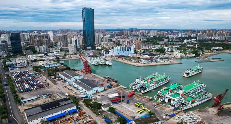 這是7月22日拍攝的恢復(fù)通航后的??谑行阌⒏郏o人機照片)。