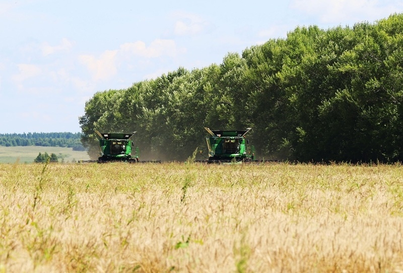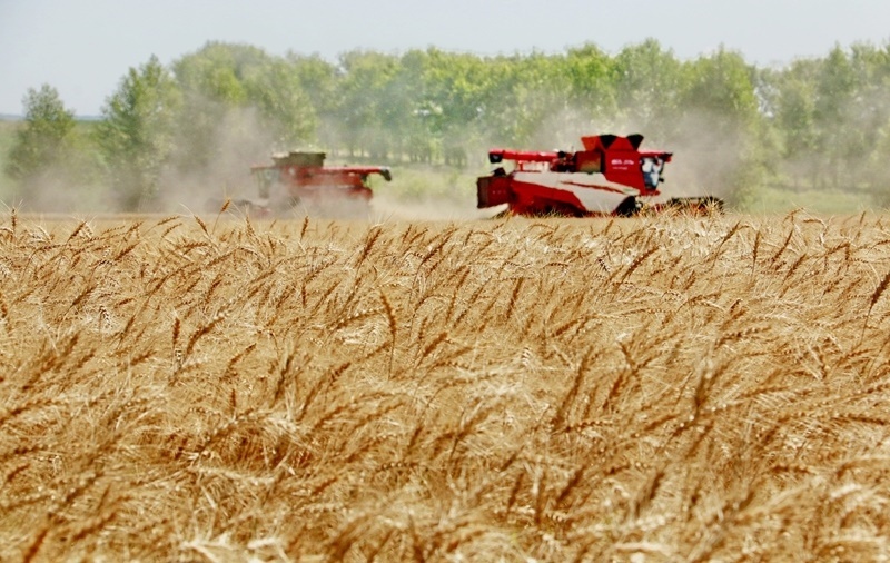 8月5日,位于黑龍江省五大連池市的大慶油田農(nóng)場調(diào)動多臺聯(lián)合收割機搶收小麥。
