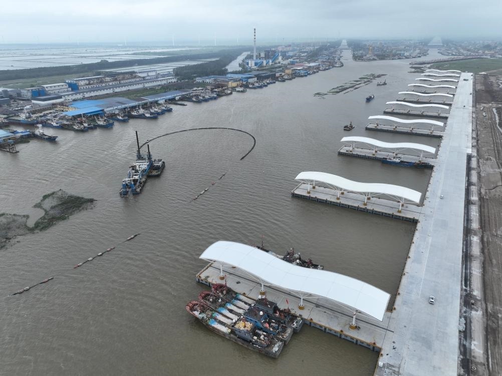 江蘇鹽城黃沙港國家中心漁港二期工程于2024年9月建成試運(yùn)營,包含2022.42米順岸碼頭、16座突堤碼頭及配套設(shè)施,是國內(nèi)首座全自動(dòng)化漁業(yè)碼頭,配備智能卸貨系統(tǒng)、水產(chǎn)品交易區(qū)、冷凍倉儲(chǔ)等設(shè)施。