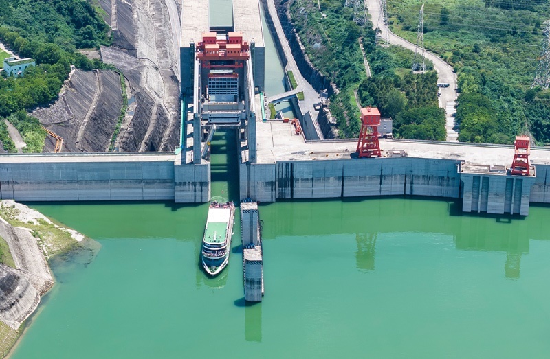 8月16日,在湖北省宜昌市,游輪滿載游客通過三峽升船機(jī)(無人機(jī)照片)。
