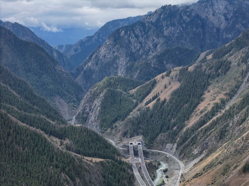 8月19日拍攝的新疆烏尉高速公路前峽1號隧道北端及其附近路段(無人機照片)。