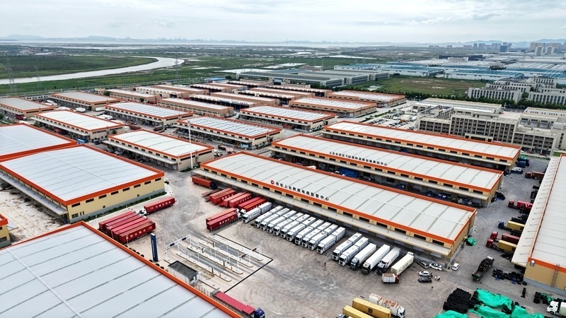 這是位于青島膠州市的中國傳化(上合)國際物流港。該物流港集智能倉儲、零擔(dān)分撥、多式聯(lián)運等功能于一體(8月27日攝,無人機照片)。