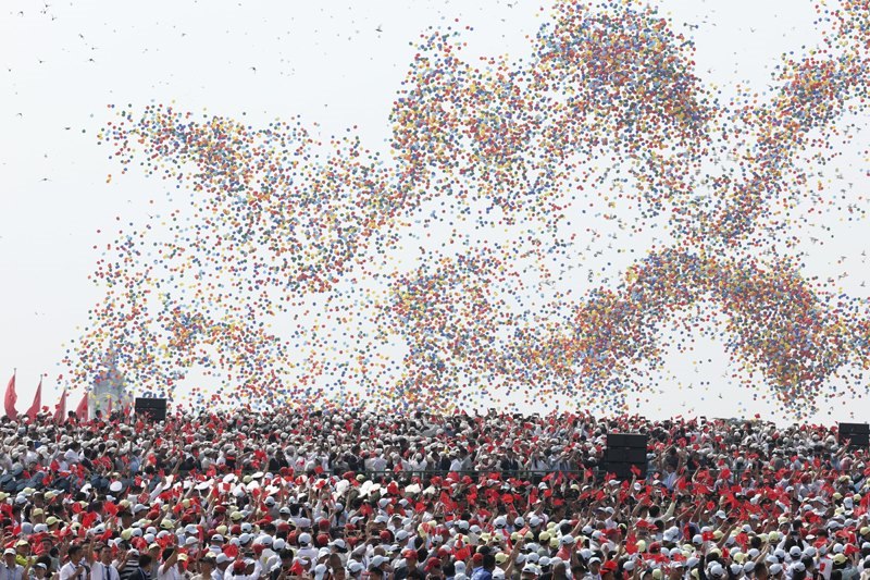 9月3日,紀(jì)念中國(guó)人民抗日戰(zhàn)爭(zhēng)暨世界反法西斯戰(zhàn)爭(zhēng)勝利80周年大會(huì)在北京隆重舉行。這是紀(jì)念大會(huì)現(xiàn)場(chǎng)放飛氣球。