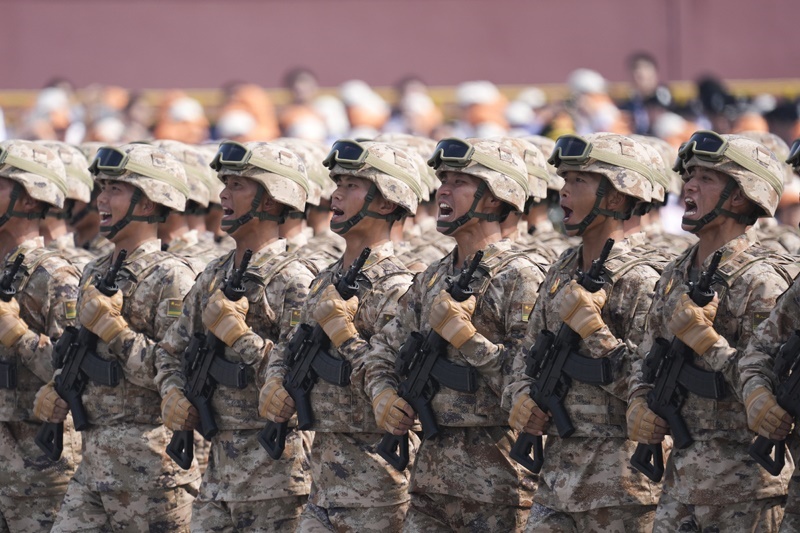 9月3日,紀(jì)念中國(guó)人民抗日戰(zhàn)爭(zhēng)暨世界反法西斯戰(zhàn)爭(zhēng)勝利80周年大會(huì)在北京隆重舉行。這是地面突擊方隊(duì)接受檢閱。