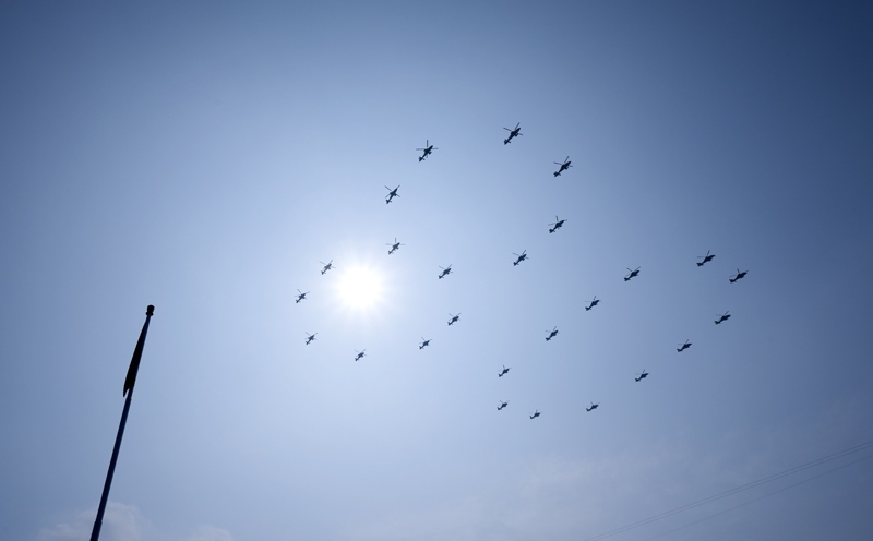 9月3日,紀(jì)念中國(guó)人民抗日戰(zhàn)爭(zhēng)暨世界反法西斯戰(zhàn)爭(zhēng)勝利80周年大會(huì)在北京隆重舉行。這是空中梯隊(duì)接受檢閱。