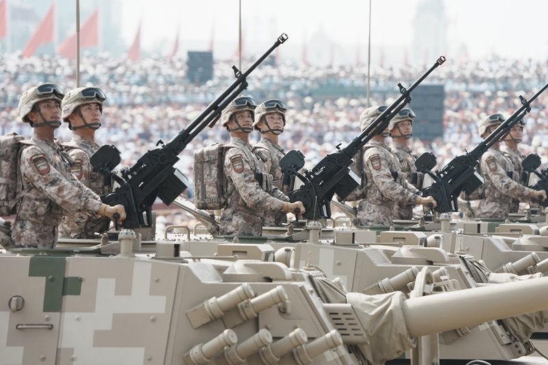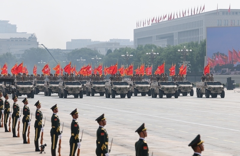 9月3日,紀(jì)念中國人民抗日戰(zhàn)爭暨世界反法西斯戰(zhàn)爭勝利80周年大會(huì)在北京隆重舉行。這是地面突擊方隊(duì)通過天安門廣場(chǎng)。