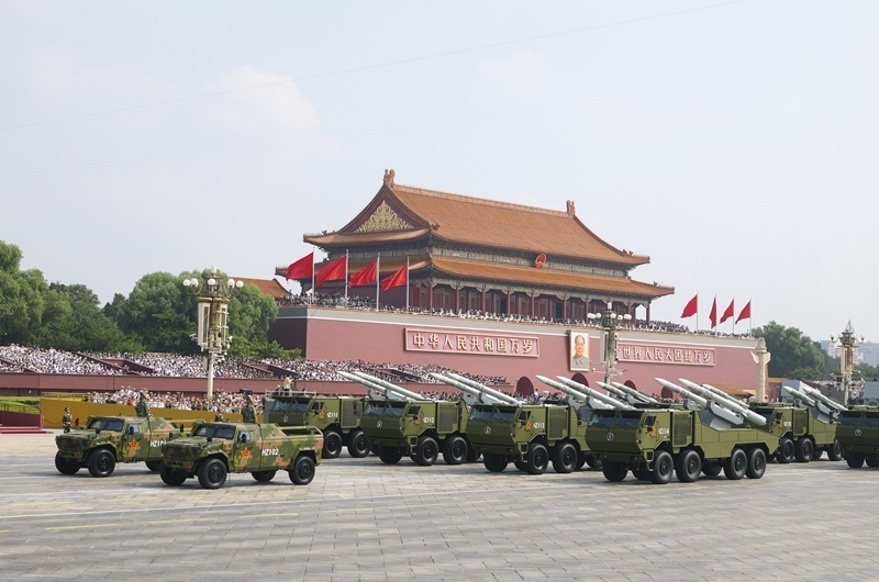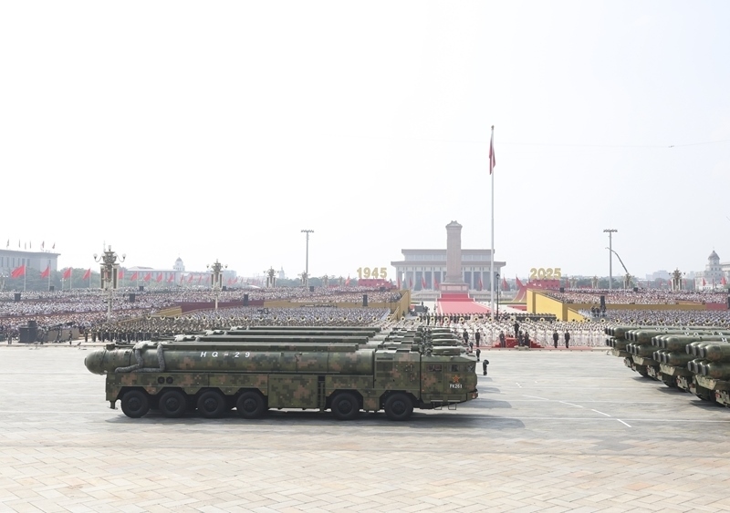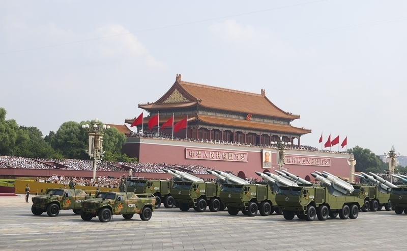 9月3日,紀(jì)念中國人民抗日戰(zhàn)爭暨世界反法西斯戰(zhàn)爭勝利80周年大會(huì)在北京隆重舉行。這是核導(dǎo)彈第二方隊(duì)接受檢閱。