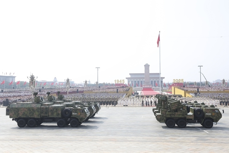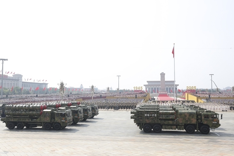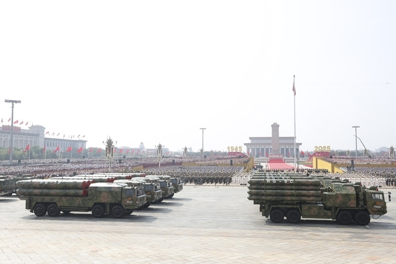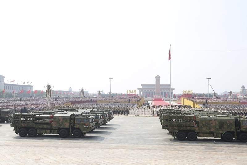 9月3日,紀(jì)念中國人民抗日戰(zhàn)爭暨世界反法西斯戰(zhàn)爭勝利80周年大會(huì)在北京隆重舉行。這是對(duì)空抗擊方隊(duì)接受檢閱。