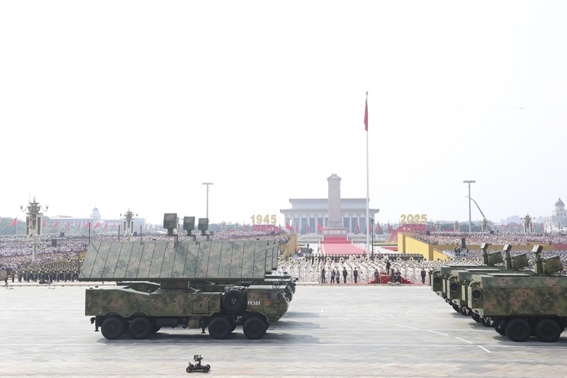 9月3日,紀(jì)念中國人民抗日戰(zhàn)爭暨世界反法西斯戰(zhàn)爭勝利80周年大會(huì)在北京隆重舉行。這是反無人機(jī)方隊(duì)接受檢閱。