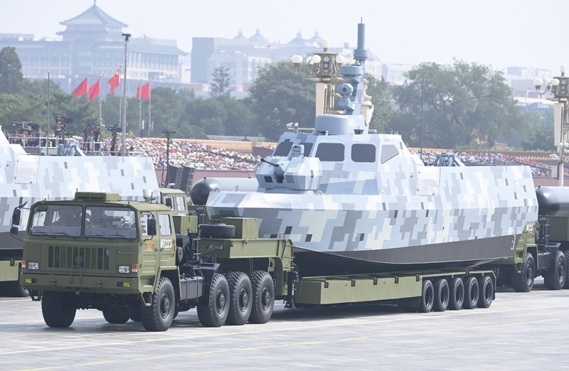 9月3日,紀(jì)念中國人民抗日戰(zhàn)爭暨世界反法西斯戰(zhàn)爭勝利80周年大會(huì)在北京隆重舉行。這是海上無人作戰(zhàn)方隊(duì)通過天安門廣場(chǎng)。