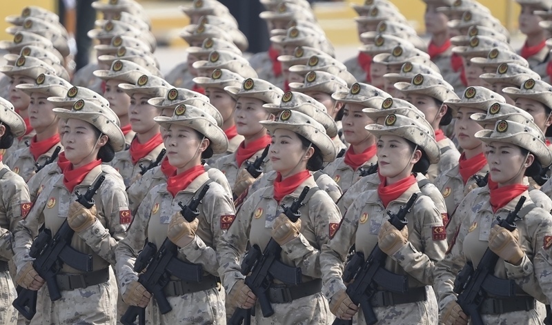 9月3日,紀(jì)念中國人民抗日戰(zhàn)爭暨世界反法西斯戰(zhàn)爭勝利80周年大會(huì)在北京隆重舉行。這是網(wǎng)絡(luò)空間作戰(zhàn)方隊(duì)接受檢閱。