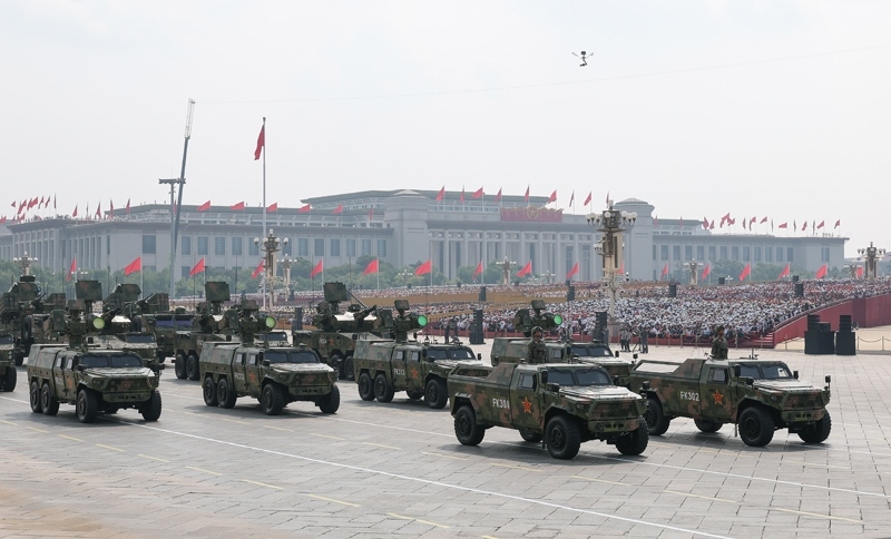 9月3日,紀念中國人民抗日戰(zhàn)爭暨世界反法西斯戰(zhàn)爭勝利80周年大會在北京隆重舉行。這是信息支援方隊通過天安門廣場。