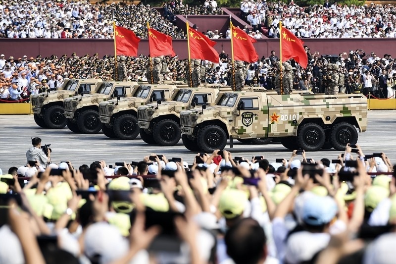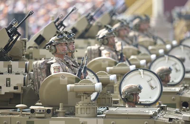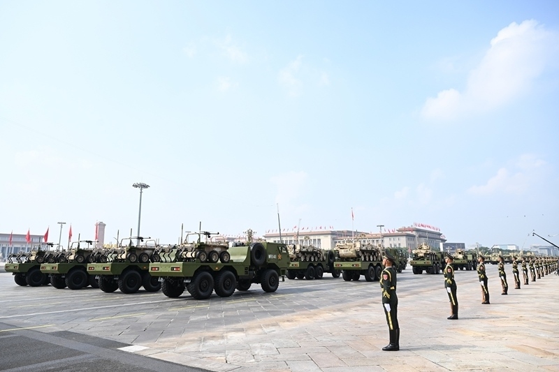 9月3日,紀(jì)念中國人民抗日戰(zhàn)爭暨世界反法西斯戰(zhàn)爭勝利80周年大會在北京隆重舉行。這是信息支援方隊接受檢閱。