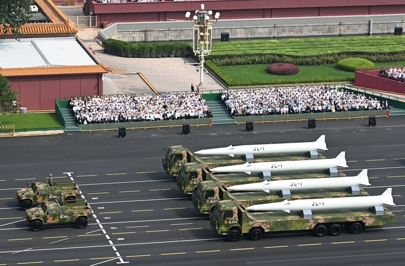 9月3日,紀(jì)念中國人民抗日戰(zhàn)爭暨世界反法西斯戰(zhàn)爭勝利80周年大會在北京隆重舉行。這是核導(dǎo)彈第一方隊接受檢閱。