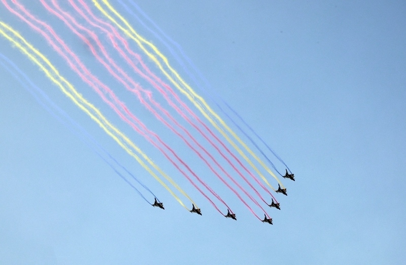 9月3日,紀(jì)念中國人民抗日戰(zhàn)爭暨世界反法西斯戰(zhàn)爭勝利80周年大會在北京隆重舉行。這是教練機(jī)梯隊接受檢閱。