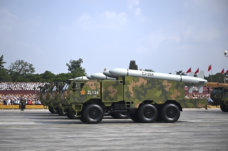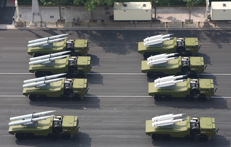 9月3日,紀(jì)念中國人民抗日戰(zhàn)爭暨世界反法西斯戰(zhàn)爭勝利80周年大會在北京隆重舉行。這是高超聲速導(dǎo)彈方隊接受檢閱。