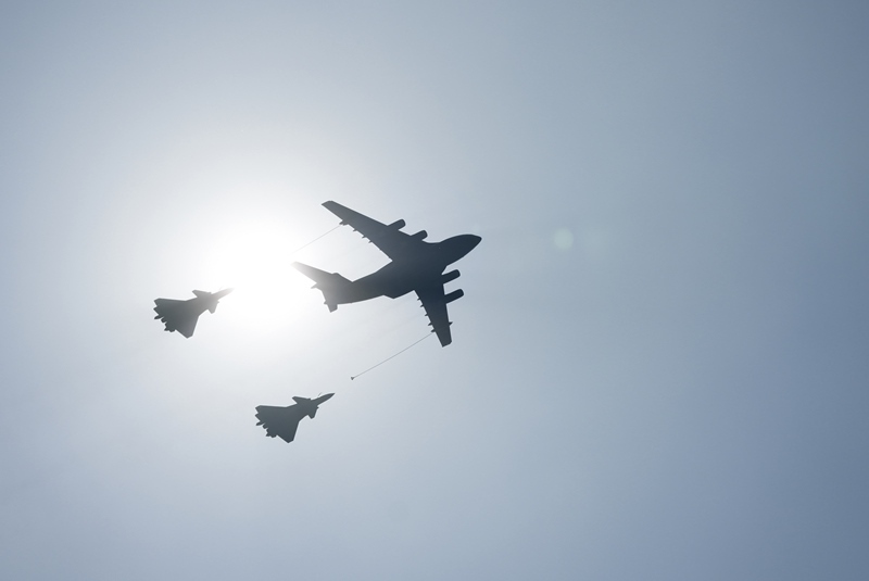 9月3日,紀(jì)念中國人民抗日戰(zhàn)爭暨世界反法西斯戰(zhàn)爭勝利80周年大會在北京隆重舉行。這是加受油機(jī)梯隊接受檢閱。