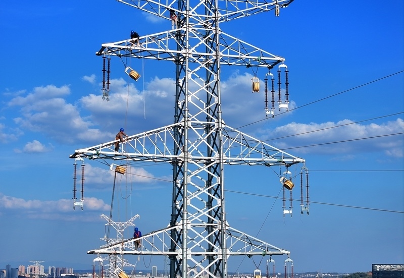 10月3日,在湖南省衡陽市雁峰區(qū)岳屏鎮(zhèn),施工人員在真武-麻塘220千伏線路改造工程項目開展架線施工作業(yè) (無人機照片)。