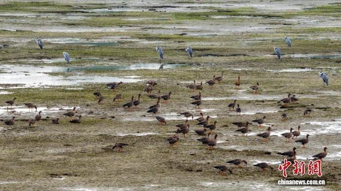 據(jù)江西鄱陽湖國家級自然保護(hù)區(qū)管理局湖口保護(hù)監(jiān)測站站長高新介紹,目前鄱陽湖湖口水域已發(fā)現(xiàn)數(shù)百只白額雁、小白額雁、豆雁等雁類候鳥的蹤跡,相比去年候鳥抵達(dá)時間推遲了近半個月。