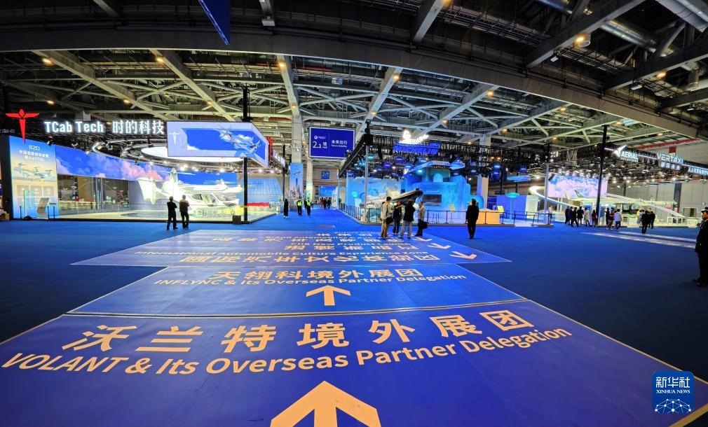 這是第八屆進博會汽車館內的未來出行展區(qū)(11月3日攝)。
