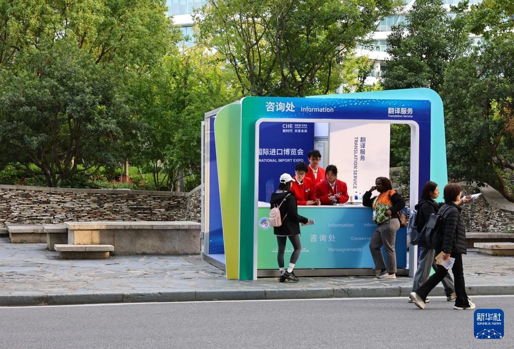 11月3日,志愿者在國家會展中心(上海)的一個咨詢處內工作。