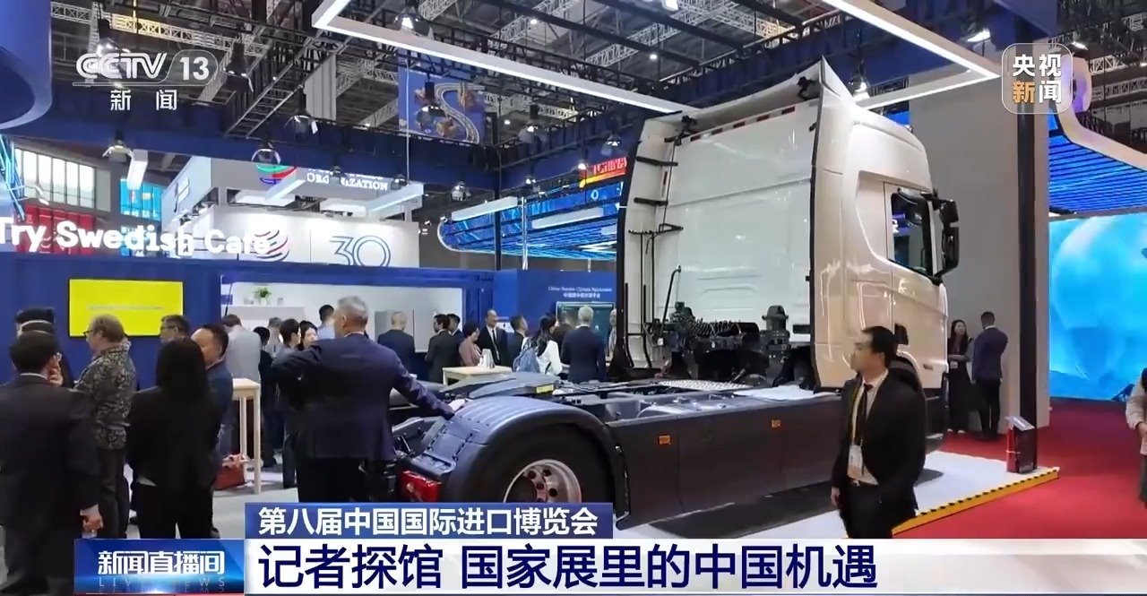我的AI眼鏡第一時間就捕捉到了這個“大塊頭”,放眼望去,整個國家展里沒有比它還大件的展品了。這輛高端重卡車型來自瑞典,是享有“公路之王”美譽的瑞典企業(yè)斯堪尼亞帶來的重型運輸領(lǐng)域的最新成果。別看它塊頭大,新技術(shù)賦予了它高效節(jié)能的特點,是今年國家展里最吸睛的展品之一。