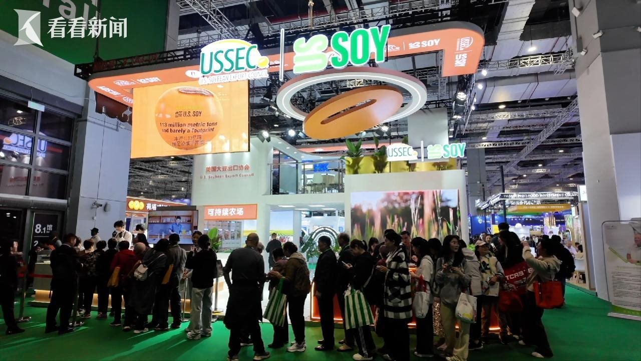 蘇健說的不是客套話。進博會一開始,他的行程就滿滿當(dāng)當(dāng)——開館剪彩、客商對接、媒體專訪。他的身后,是一群帶著中文名片、中文宣傳資料的豆農(nóng),賣力帶貨?!罢绱蠹以诂F(xiàn)場看到的,我們可以把大豆加工成大豆油,這種油品更適合高溫烹飪。”美國豆農(nóng)蓋思凱說。